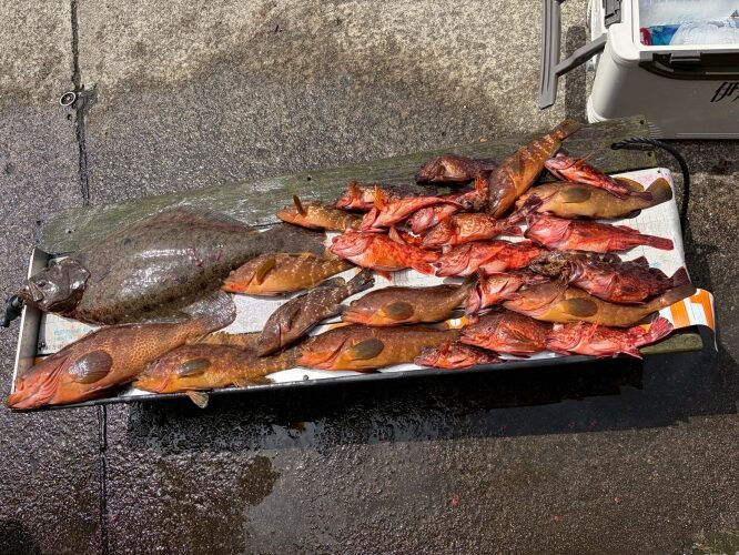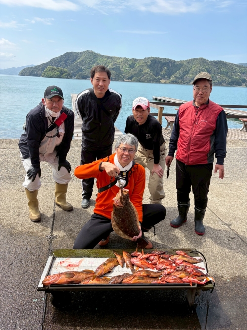 4月18日 ヒラメ60.5㎝ アコウ43㎝ほか シースタイル田中さんチーム